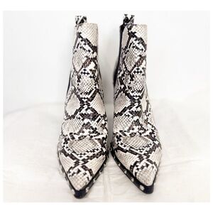 CHARLES DAVID Dodger White Black Snakeskin Print Ankle Boots Size 8