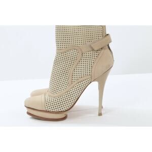 CHARLES DAVID Perforated Leather Platform Ankle Boots Booties