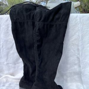 Faux suede over the knee boots. Low heel. Ties behind the knee. Great condition. Size 7.