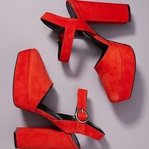 CHARLES DAVID Roan Red Suede Platform Block Heel Ankle Strap Sandals 41
