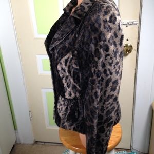 CHARLES GRAY LONDON, made in England. Faux fur, in a leopard print of dark brown and black. Black lining, and 2 pockets in the front, 3 button front and notched collar. it has a 36 bust 32 waist and 24 inches top of collar to bottom. Keep in mind this is the outside measurements