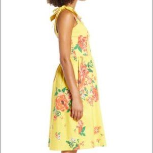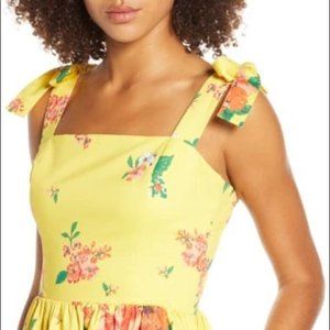 CHARLES HENRY Floral Tie-Strap Fit & Flare Sundress Yellow Size Small NWT
