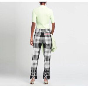 straight-leg buckled tartan trousers from CHARLES JEFFREY LOVERBOY featuring black, white, cotton, tartan check pattern, slim cut, straight leg, buckle-fastening ankle strap and logo patch to the rear.