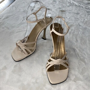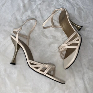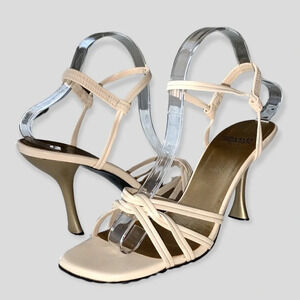 Charles Jourdan Paris Nude Strappy Leather Heels