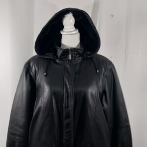 From Charles Klein comes this heavyweight, toasty warm pure genuine leather jacket, coat, parka styled! Featuring a plush black zip-out lining with a poly satin lining beyond that! The hood is also plush lined, and also zips on and off! Full zipper front, front pockets, gorgeous leather! Size L, worn just twice! Excellent! Superb EUC Condition! **ABSOLUTELY GUARANTEED CONDITION: EUC MINTY-EXCELLENT TO LIKE-NEW, by Lily @HauteClub!***