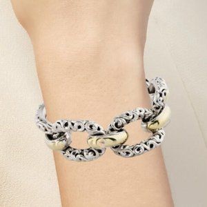CHARLES KRYPELL 18K 14K & STERLING SILVER LARGE HEAVY IVY LINK AMAZING BRACELET