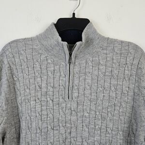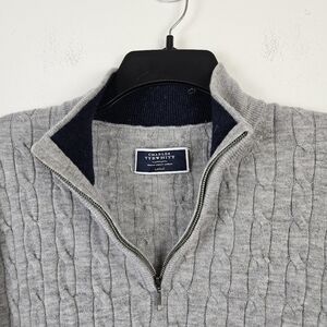 CHARLES TYRWHITT Men's 100% Lambs wool Cable Knit 1/4 Sweater Size Large Gray