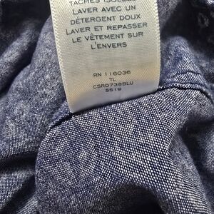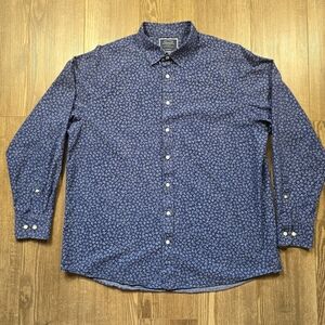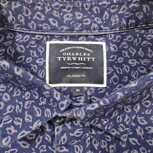 CHARLES TYWHITT Shirt Mens XL Blue Chambray Classic Fit Leaf Casual Cotton