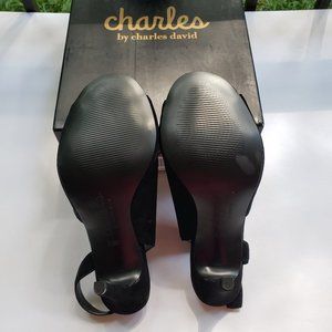 CHARLES by CHARLES DAVID Riot Pumps Slingback in Black Suede Size 6.5 Brand New