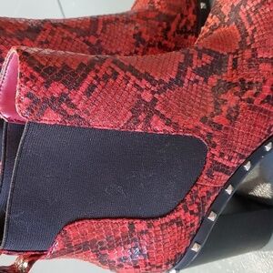 CHARLES, by Charles David red snakeskin, chunky heal booties. Size 6, N…