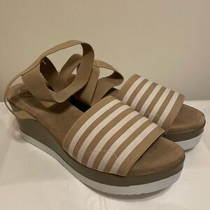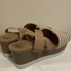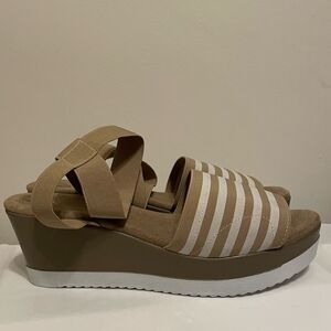 CHARLESTON SHOE CO. NWOT Stripe Palm Wedge Sandal in Tan and White