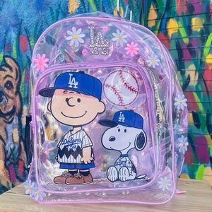 CHARLIE And SNOOPY Los Angeles Baseball Clear Backpack- Pink