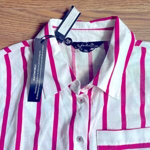 CHARLIE B Button-Down Rayon Linen Blend White Pink Shirt Size L NWT