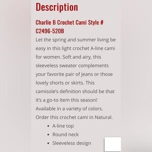 🌹CHARLIE B CROCHET NATURAL SLEEVELESS CAMI STYLE TANK