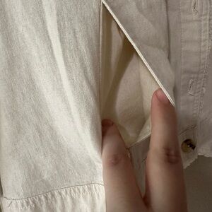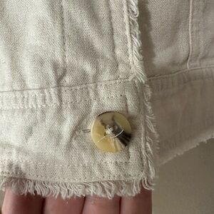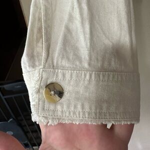 Stylish cream jean jacket. Features button closure. Perfect for casual wear.