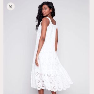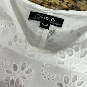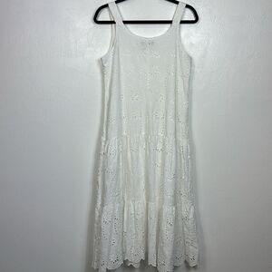 CHARLIE B Eyelet Cotton Sleeveless Midi Sundress In White Size M
