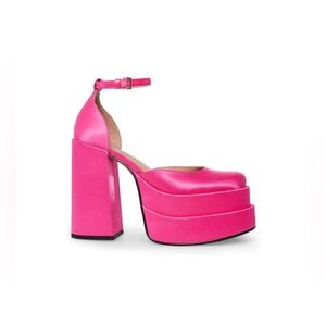 Demand attention when you walk into any room in CHARLIZE black satin heels. A chunky double platform and sky-high block heel define these sandals, sure to give you major disco queen vibes.