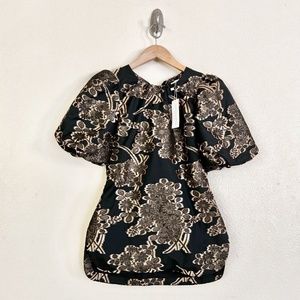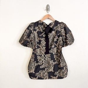 CHARLOTTE BRODY Snow Drop Silk Puff Sleeve Top in Golden Blossom Fil Coupe Black