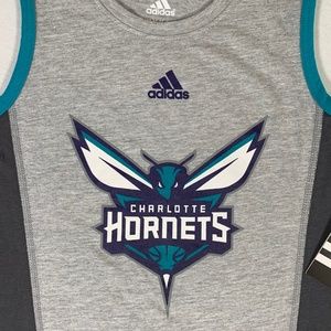 CHARLOTTE HORNETS SHIRT KIDS MEDIUM 5/6 NBA ADIDAS GRAY
