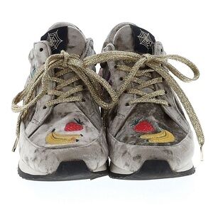 CHARLOTTE OLYMPIA Metallic Gray Velvet “Work It Fruit Sala Sneakers Size 35 EUC
