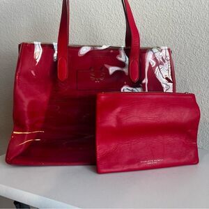 CHARLOTTE OLYMPIA Red Clear Laptop Work Tote Shoulder Bag + Pouch