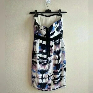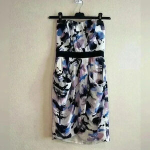 CHARLOTTE RONSON Size 4 WATERCOLOR 100% Silk Side Boned Strapless Dress