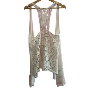 CHARLOTTE RUSSE Boho Crochet Vest Lace Back Ruffle Hem Womens Large Beige Layer