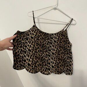 CHARLOTTE RUSSE Brown Black Cheetah Leopard Animal Print Scalloped Hem Crop Top