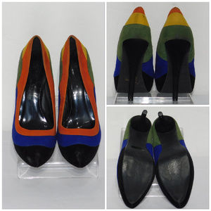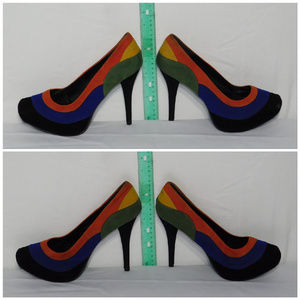 CHARLOTTE RUSSE, Color Block Platform Pump, size 10 M, faux suede, slightly pointed toe, stiletto heel, man-made materials. Rulers for reference only (blue is 6", green is 12"). Pictures are accurate depiction of condition, please zoom in for close up view of any distress, scratches, scuffs. SAVE BIG! AUTOMATIC 30% BUNDLE DISCOUNT! ADD TO A BUNDLE!