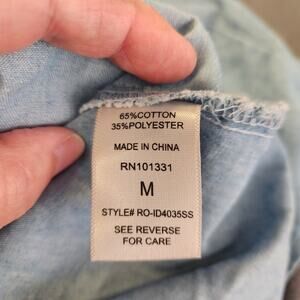 Item: CHARLOTTE RUSSE Crop Top Womens M Blue Chambray Peasant Milkmaid Boho Ruffle