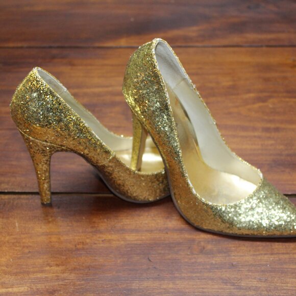 CHARLOTTE RUSSE Gold Sparkle Glitter Stiletto Pumps High Heel, 7 EUC