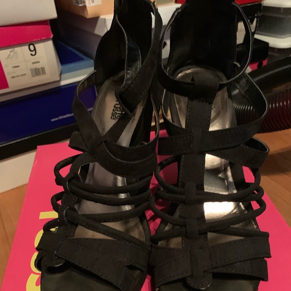 Comfortable Gently used In original box Back zipper Some scuffs