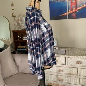 CHARLOTTE RUSSE Plaid Split Back Long Sleeves Plaid Blouse size XS Flannel feel