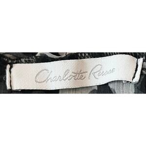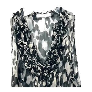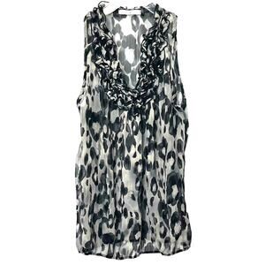 CHARLOTTE RUSSE SLEEVELESS RUFFLED V-NECK BLOUSE, WOMENS, L-BLACK & GREY LEOPARD