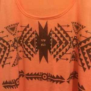 Coral color, Aztec print, slightly sheer (pic 4), a little on the shorter side