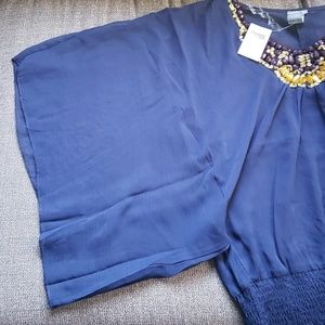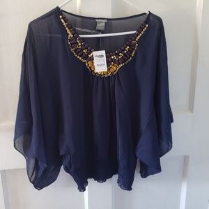 Beautiful boho style with beading. See through dark blue. NEW with tag!