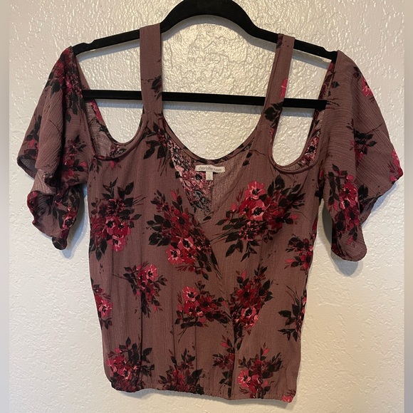 Charlotte Russe Top, cut out sleeves, floral print, worn once, elastic around the bottom, very cute with a pair of jeans and heels