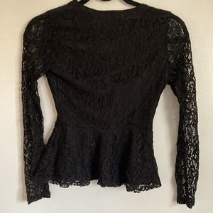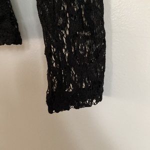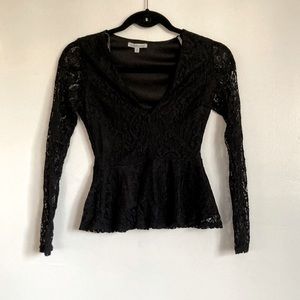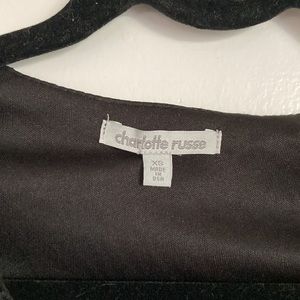 Black lace V front charlotte risse dress top. Sooo cute wear this with jeans, skirt or whatever you like this too is so adorable. Size XS. Little flare flowy bottom of shirt to give it just a little added extra adorable to it. Approx length from shoulder to bottom is 19.5 in long arm pit to arm pit is approx 14 in. very good condition