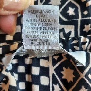 EUC Charlotte Russe sleeveless top. Dark blue on tan background. Gathered waist for blouson styling