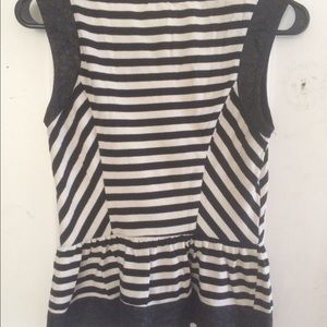 Soft 97% cotton peplum top with black stripes and black faux leather trim. Very cute! Size small. 21in from shoulder to hem. GUC