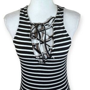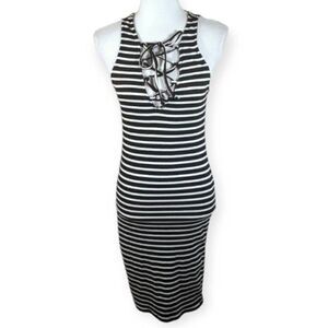 CHARLOTTE RUSSE BLACK & WHITE STRIPE BODYCON DRESS SZ.M EUC.