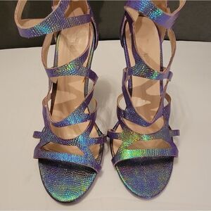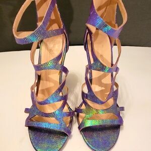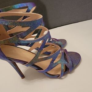 CHARLOTTE RUSSE OPEN TOE BLACK ZIPPER STILETTOS SANDAL SIZE 8 COLOR BLUE &GREEN APPROX HEEL HEIGHT 4" INCH FAUX LEATHER THIS ITEMS IS PRE-OWNED EXCELLENT CONDITION YOU MIGHT MISTAKE FOR NEW CHECK THE PICTURES