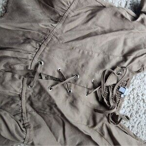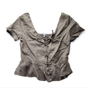 CHARLOTTE Russe Corset Cropped Ruffle Sleeve Summer Olive Green Top Small