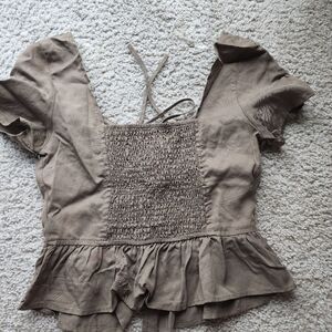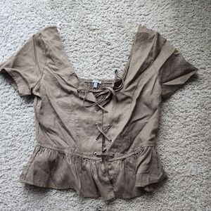 Charlotte Russe Corset Cropped Ruffle Sleeve Summer Olive Green Top Small