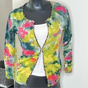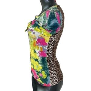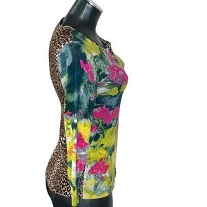 CHARLOTTE TARANTOLA Floral Leopard Animal Print Top Cardigan Women's XS