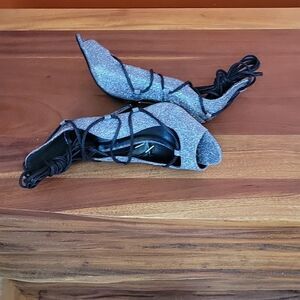 CHARLOTTE RUSSE LACE UP STRAPPY SEY STILETTOS OPEN TOE ANKLE STRAP WOMEN SANDAL SIZE 6 COLOR SILVER METALLIC GRAY MADE WITH ALL MAN MADE MATERIALS HEEL HEIGHT MEASUREMENTS APPROX 4"INCHED THIS ITEMS IS PRE-OWNED EXCELLENT CONDITION YOU MIGHT MISTAKE FOR NEW CHECK THE PICTURES