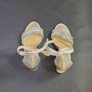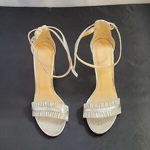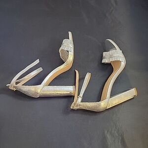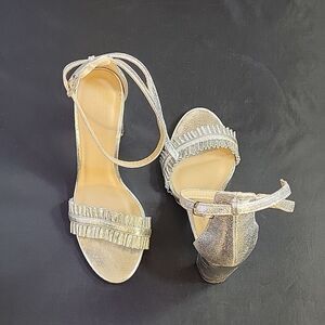 CHARLOTTE RUSSE POINTED TOE ADJUSTABLE BUCKLE ANKLE STRAP BLOCK HEEL SANDAL SIZE 8 COLOR METALLIC SILVER BACK COVER HEEL HEIGHT MEASUREMENTS APPROX 4"INCHED THIS ITEMS IS PRE-OWNED EXCELLENT CONDITION WITH ONLY LIGHT SIGNS OF WEAR IF ANY CHECK THE PICTURES