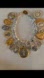 and ends with a lobster clasp. It is 1 3/4 inches wide. Please look at the photos some of the charms are large as shown in the photos. If you need the bracelet lengthened or shortened just ask.