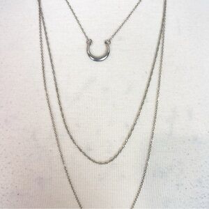 Charming Charlie 3 strand pre layered long necklace. Silver tone