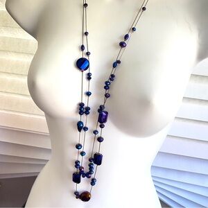 CHARMING CHARLIE Double Strand Midnight Blue Long Necklace